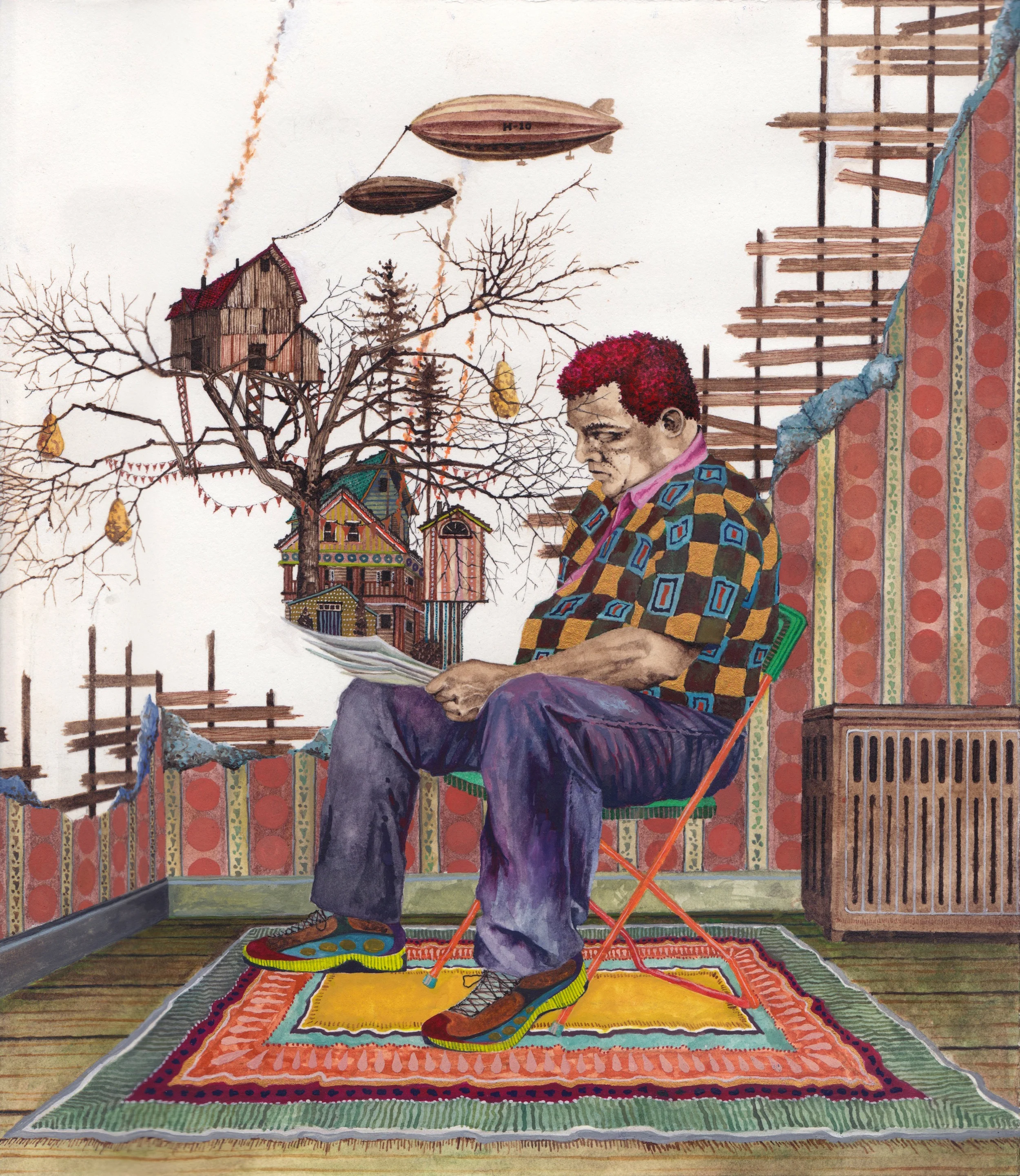 Flag Flung High, gouache and ink on paper, 9.5" x 10" 2014.