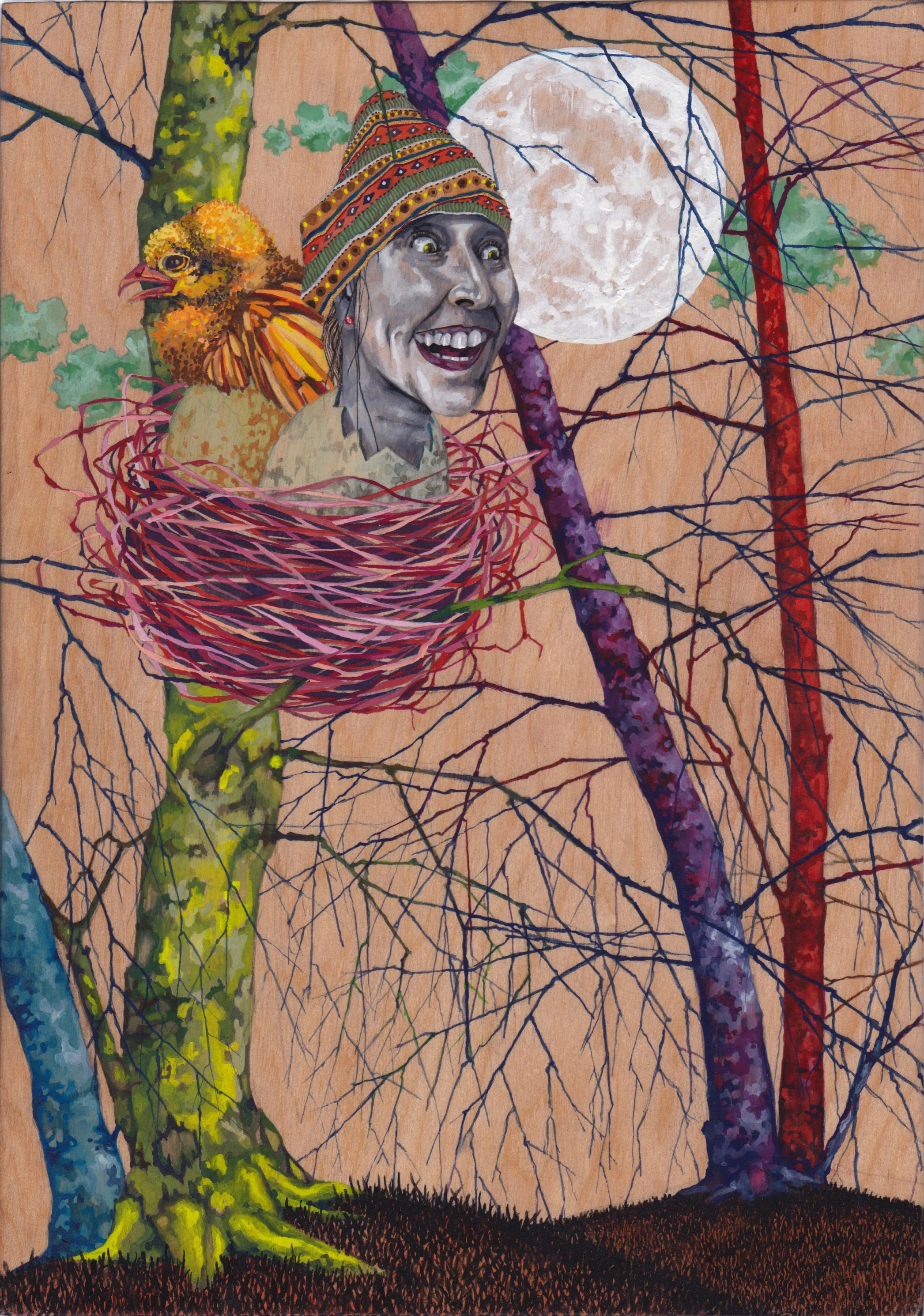 New Moon Rising, gouache on panel, 10" x 6.5" 2014.