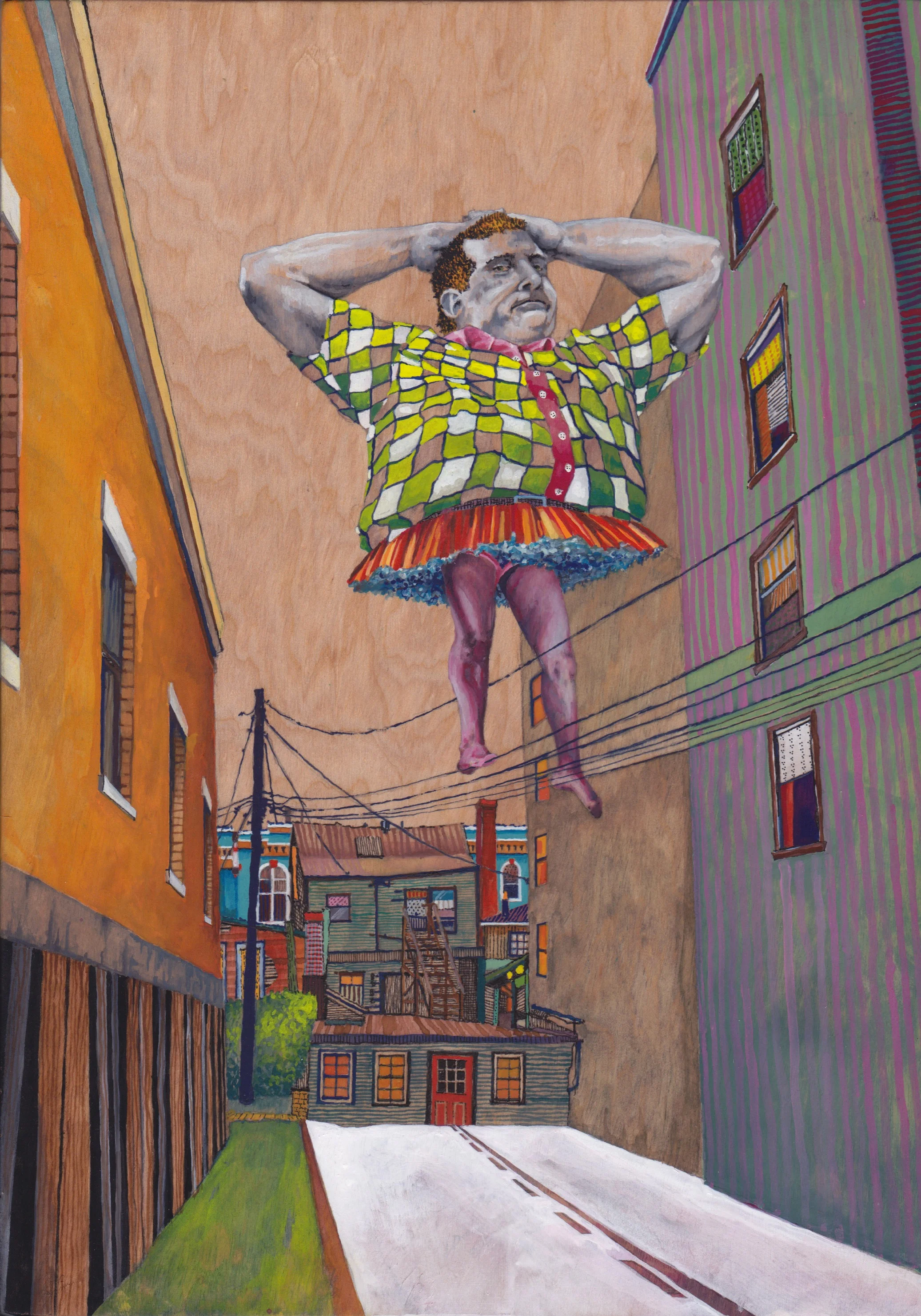 Tip Toe, gouache on panel, 10" x 6.5" 2014.